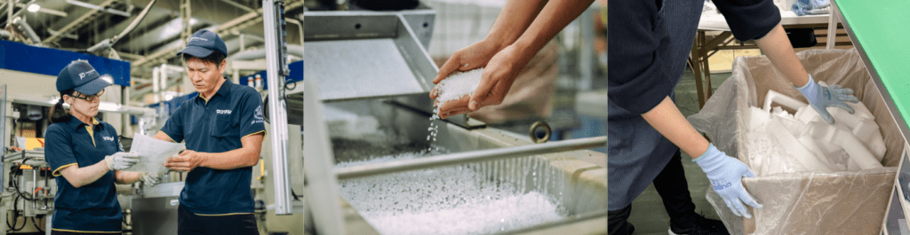 私たちは廃棄プラスチックを地上資源として捉え直し、その価値を回復させ、再びものづくりへ活かすための設備投資と仕組みづくりを進めてきました。