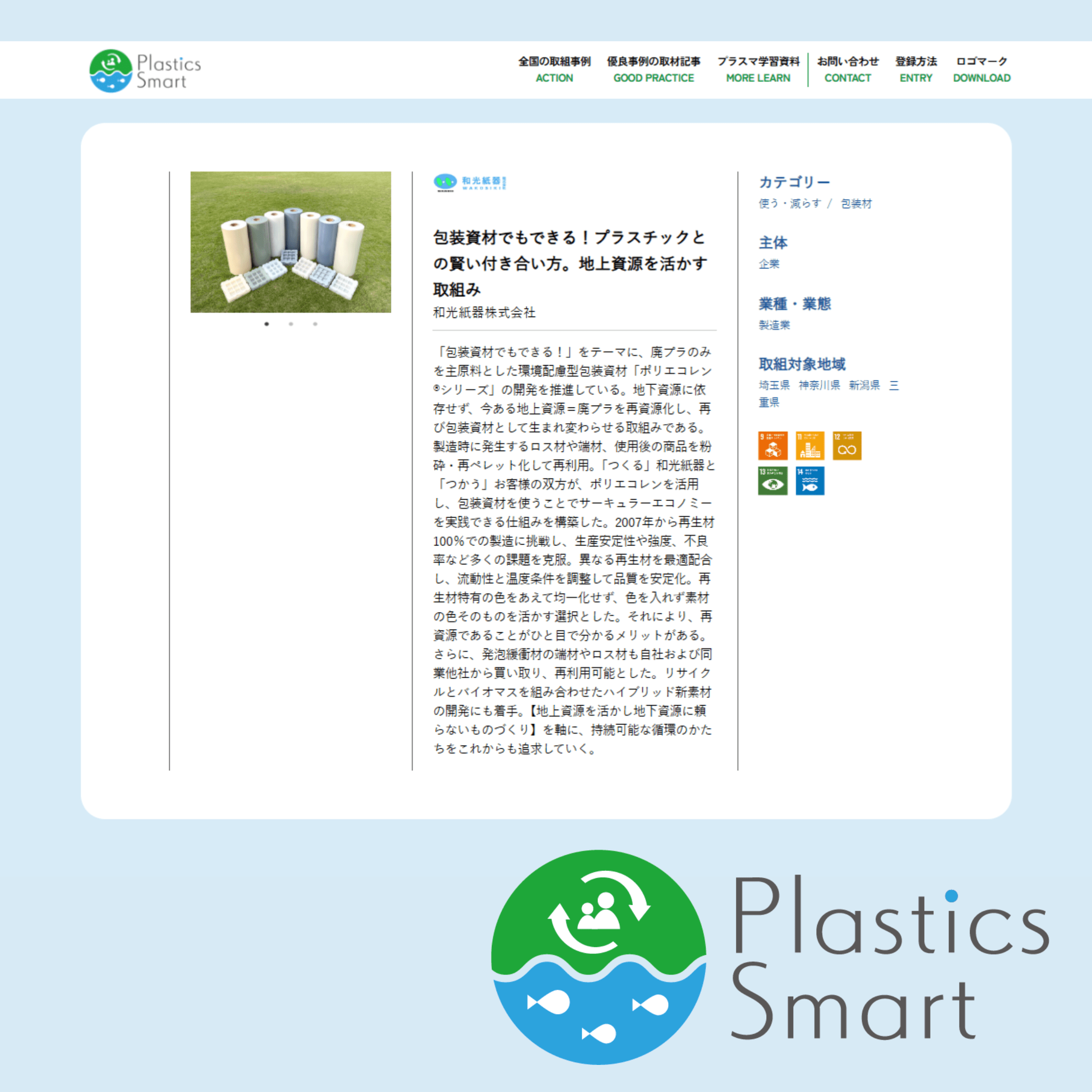 「プラスチック・スマート」に、海洋プラスチックごみ問題の解決に貢献する事例として、和光紙器の取り組みが掲載されました。
