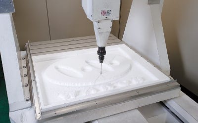 三次元データと連携して立体モデルの作成を行う創造機械。PC制御により限りなく製品に近い形状にて切削が可能です。