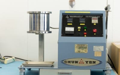 シート製造する上で必要となる熱可塑性樹脂の溶融時粘度(流動性)を測定する設備です。