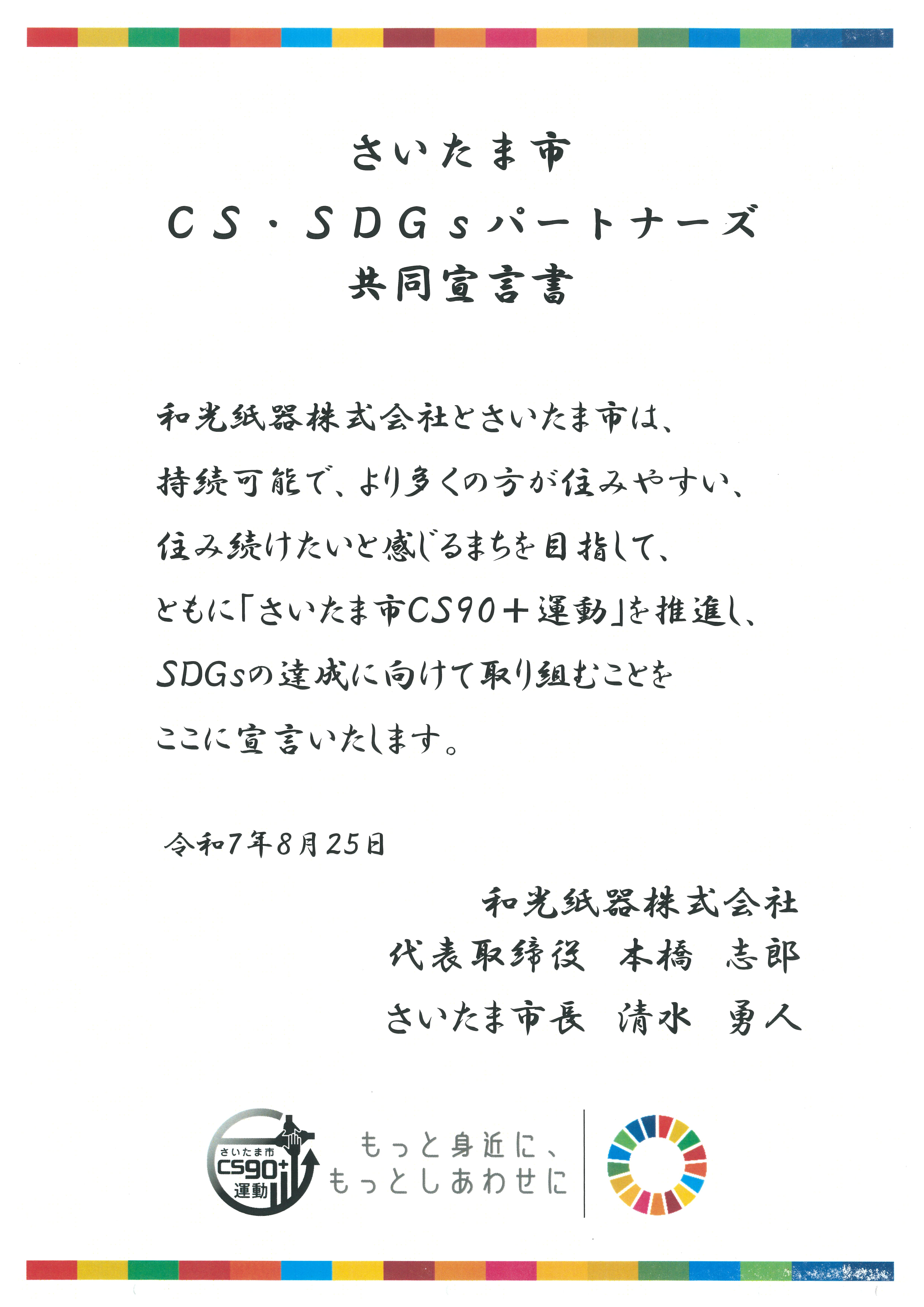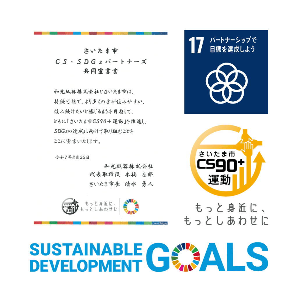 和光紙器株式会社は環境に配慮した包装資材を取り扱い、SDGsの達成に貢献する企業として、「さいたま市CS・SDGsパートナーズ」に登録されました。