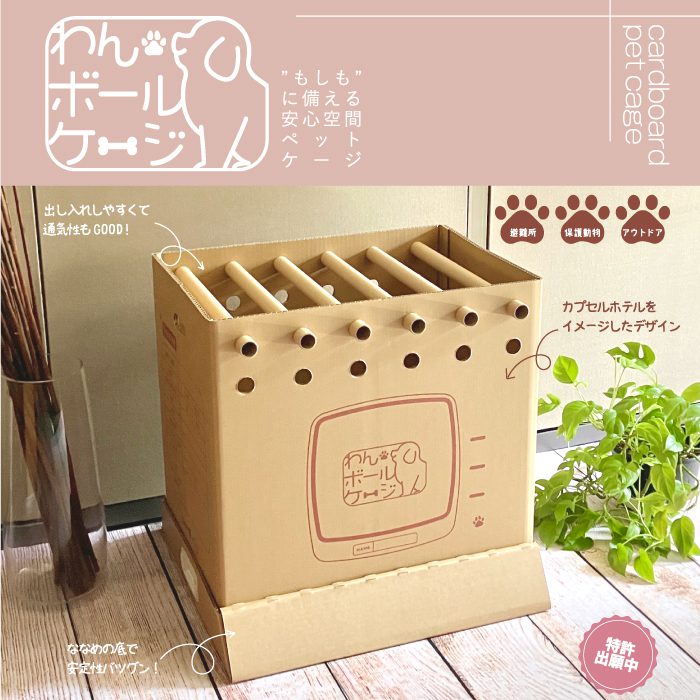 緊急の事態だからこそ、人も動物も安心できる空間を大切に、短い間でも快適に過ごせるようにと開発されたのが『わんボールケージ』です。