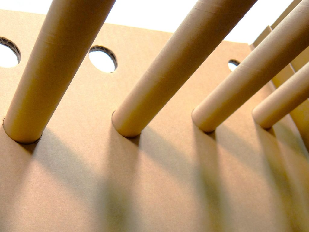 天面は丸紙管を6本使用し、犬の頭のサイズを考慮した間隔になっています。