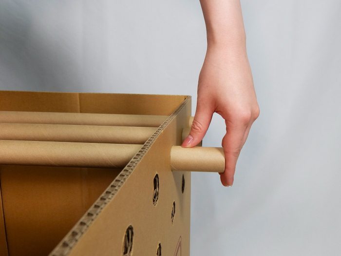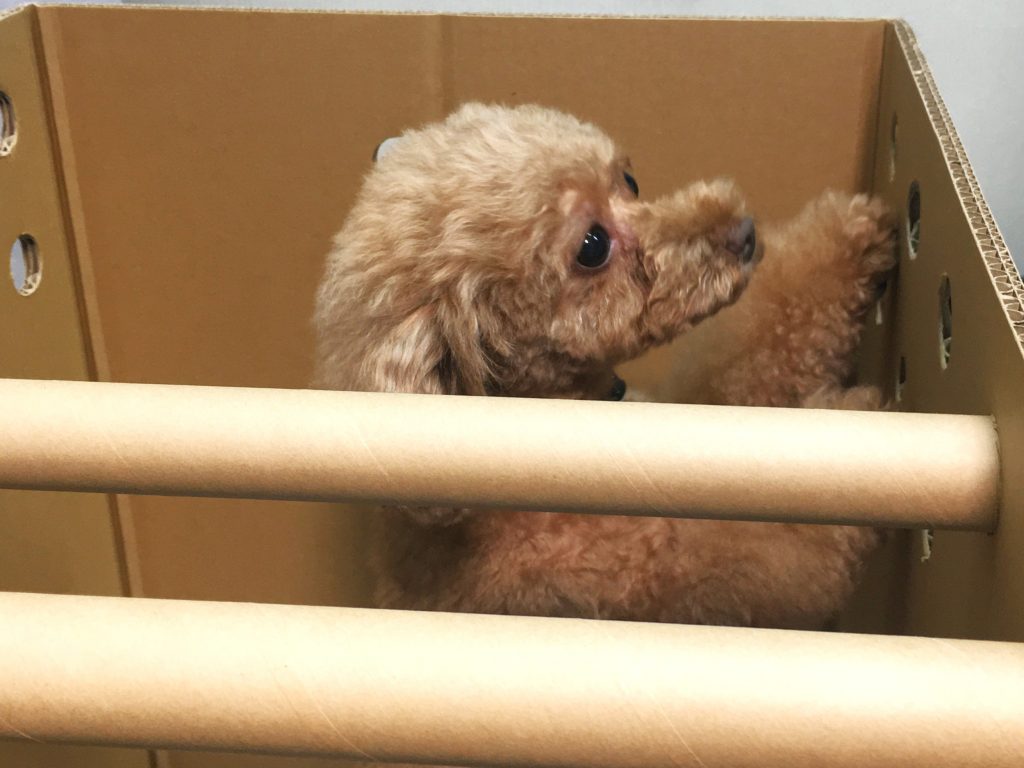 わんボールケージの梱包箱は隙間にもすっぽり入るサイズ。使っていないときもスペースを取ることなくストックできます。