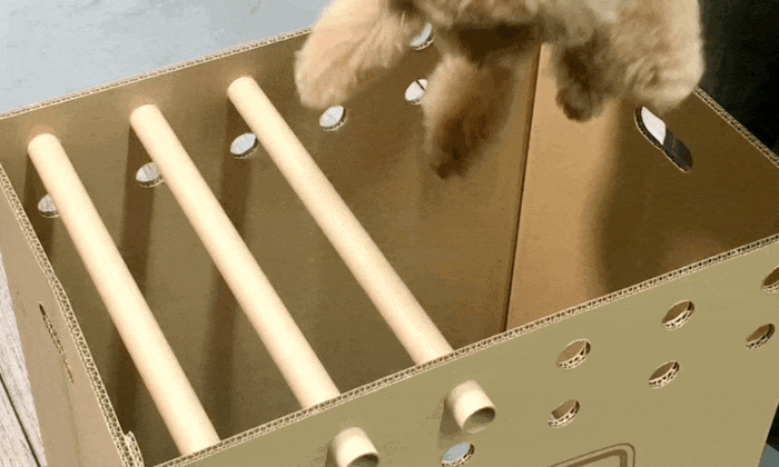 わんボールケージ本体は段ボールと廃棄プラスチックを使用。使用後は全てリサイクルができて環境にもとてもエコロジーです。